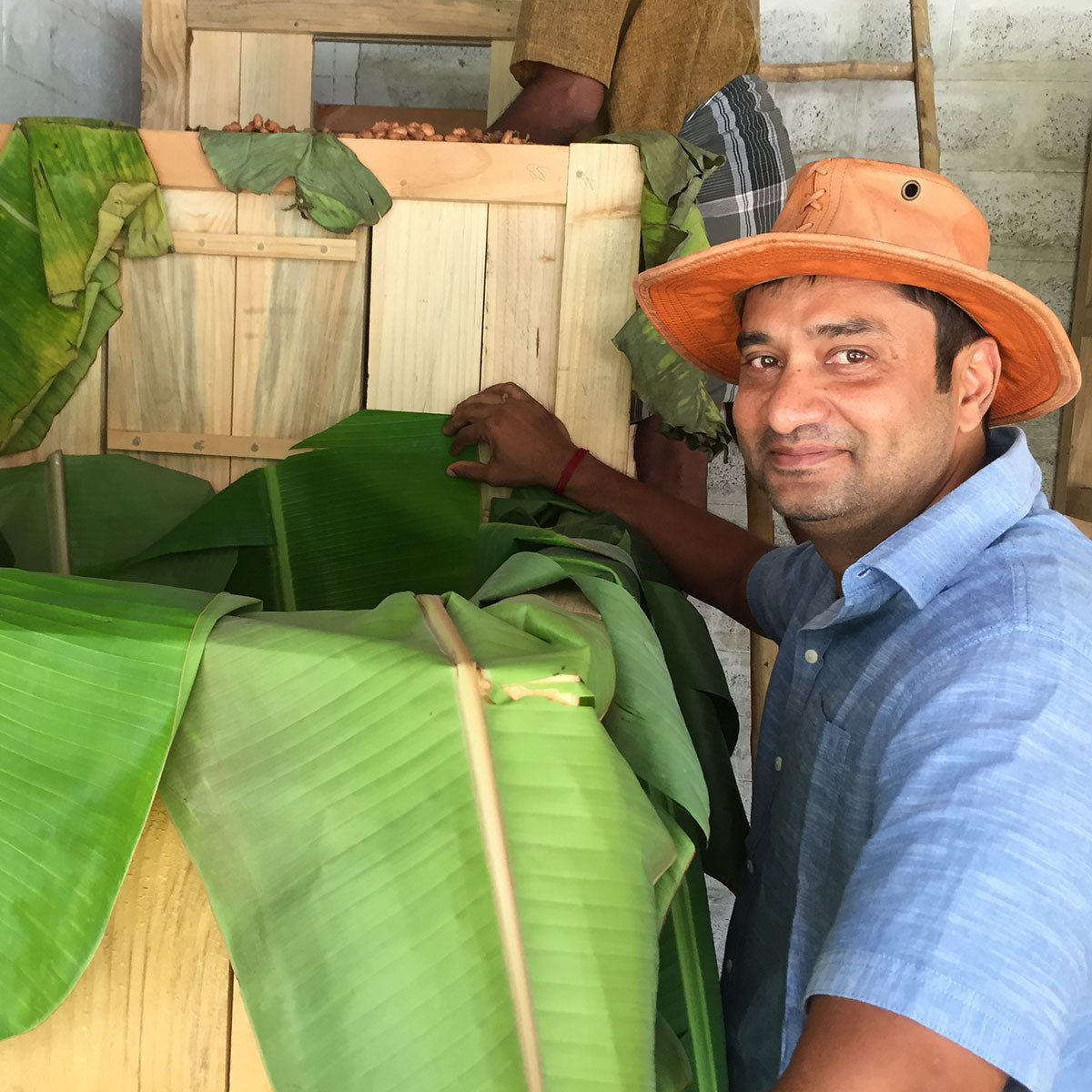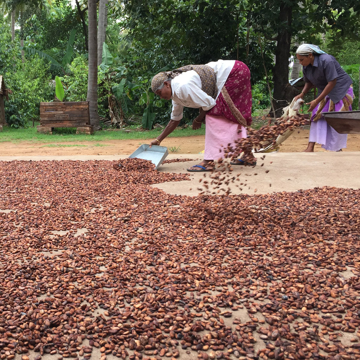 Raw, whole cocoa beans from Anamalai Estate in Pollachi, India.